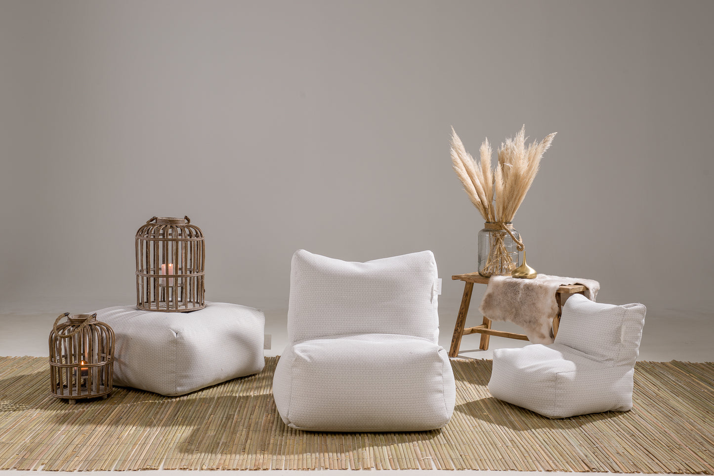 La collection Bohos peut être utilisée aussi bien à l'intérieur qu'à l'extérieur grâce au tissu 100% déperlant et au remplissage en billes EPS recyclées. La collection outdoor Laui Lounge peut rester à l'extérieur toute l'année.